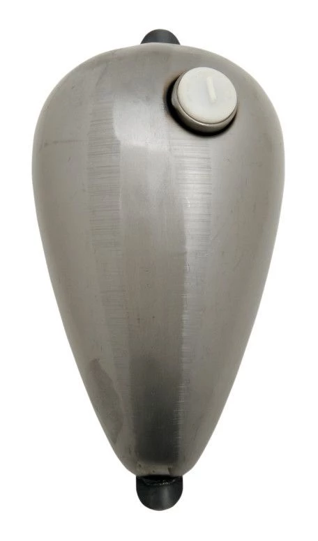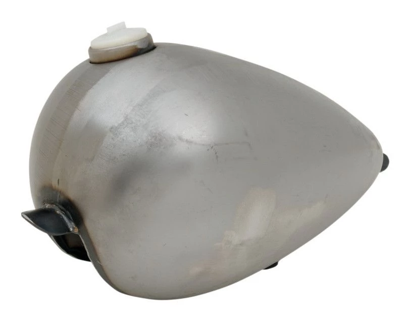 Axed-style narrow gas tanks for custom applications that have a great vintage look. Made from precision steel stampings. Universal brackets make it easy to mount it to any stock or custom frame. Left filler bung is non-functional on dual cap tank, unless you want to stash something in there.