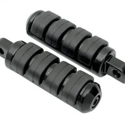 Heavy duty steel footpegs with durable rubber inserts built for comfort by isolating bike and road vibrations. The adjustable end allows the pegs to be rotated and then tightened in any direction.