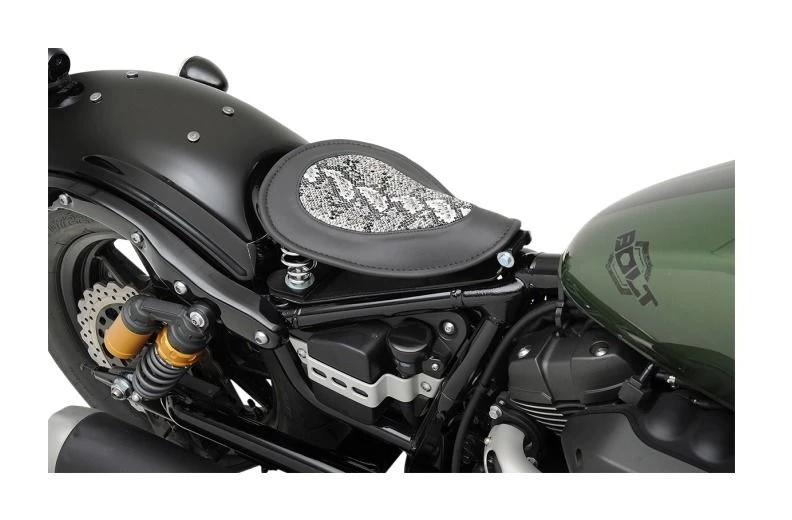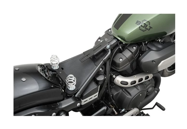 You want a solo seat on your Bolt, well this kit helps you get there with no welding required. Includes springs, faux leather cover, frame mounts, seat hinge and instructions. Can be used with a variety of aftermarket solo seats. Â